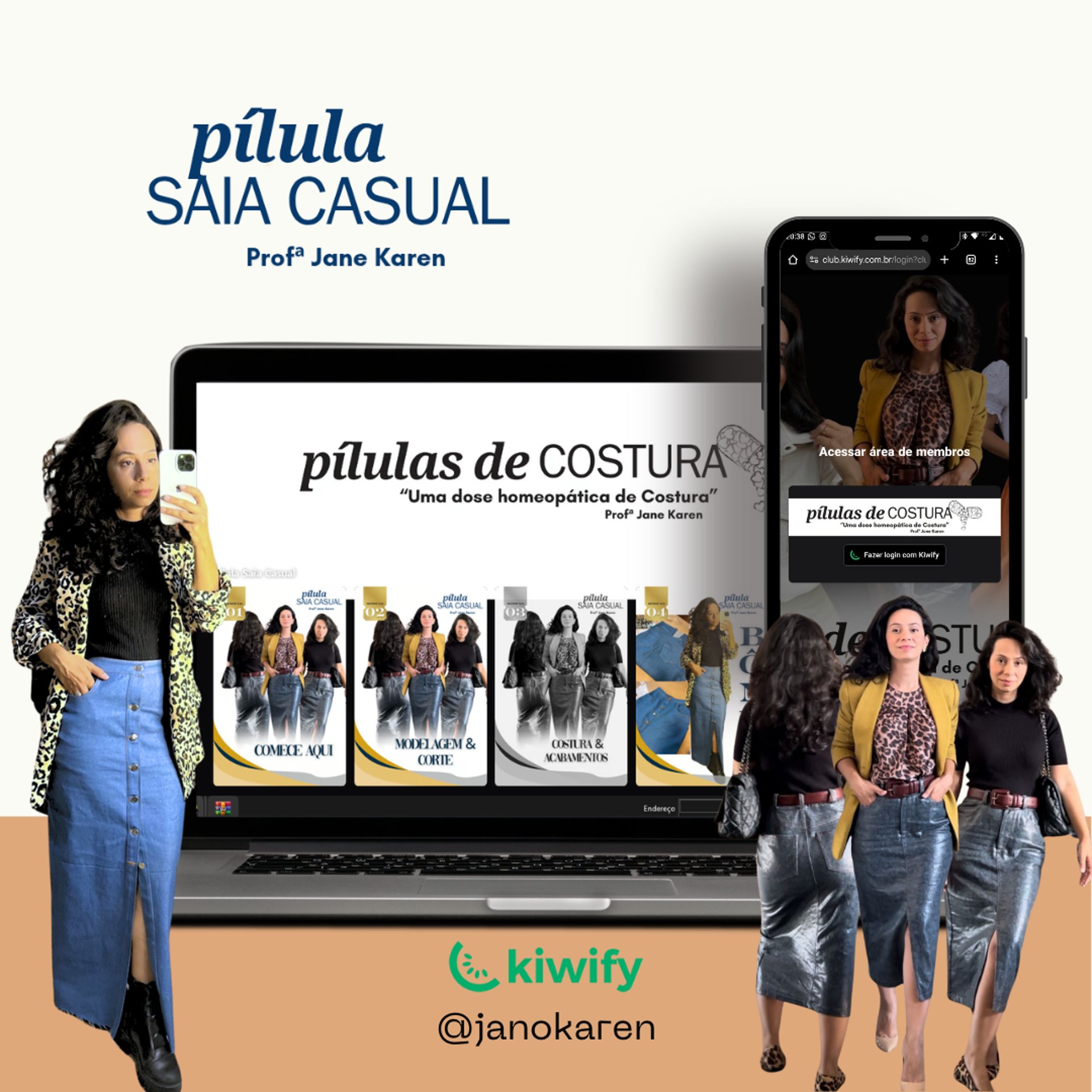 Além de aprender a Saia Casual, você ainda vai ganhar totalmente GRÁTIS a aula completa da Saia com Botões e da Saia Evasê, com a professora Jane, você vai aprender 3 saias incríveis com acabamento profissional, usando apenas máquina doméstica!